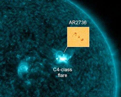 太陽に新しく現れた黒点で、20日の19時半(世界時20日10時半)にC4.8の小規模フレアが発生しました。 このフレアに伴って太陽ガス放出現象(CME)が発生しています。CMEは地球正面で発生したという状況ではありませんが、3日~4日後くらいには太陽風の乱れが到来…